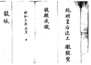 徽․尊號望 7 1928年 純明皇后追上 徽號望 敬顯成徽 昭和三年五月 日 敬依 G002+AKS+KSM-XB.1928.1111-20101008.B009a_010_00399_XXX-TXT -