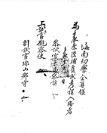 公忠道兵馬虞候爲解由事. 前虞候柳億, 以本道水軍虞候, 去辛卯 十二月二十五日都政, 移拜本職, 除辭朝, 壬辰二月初四日到任, 今將歷仕年 月日及職掌ㆍ該管物件, 員僉磨勘, 照數明白于爲此, 合行牒呈, 伏請 照驗施行, 須至牒呈者. 右 牒 呈 改 名 無 道光三年正月十三日. 兵馬虞候 -