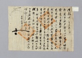 項里里任書目 本里以十五人鉤極之事, 定監色出送, 卽發各里役丁數 日極探是乎矣, 一無蹤迹, 故屍親各人處納侤音後, 緣由 修報爲白乎旀, 十五兩受來還代錢中題音據, 卽爲出給事 是良厼, 牒呈緣由事, 辛巳八月初十日 里任 盧〔着名〕 [題辭] 此船不知去處, 或其生而 眞的死耶, 今將轉報 -