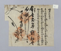 項里里任書目 本里與倭仇合洞之時供上冬栢二斗例納是如可, 數十年 前分洞之後各其一斗式分當, 而本里段今年条一斗已爲當納矣, 到今更抄, 未知委折, 詳査勿侵之意緣由事. 戊申十二月二十一日 里任□〔着名〕 [題辭] 一斗勿侵向事. 戊申十一月卄一日 使〔押〕 G002+AKS+KSM-XC.0 -
