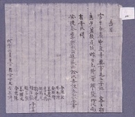 告目. 惶恐伏地, 問 安爲白乎旀, 昨年四月日, 伏聞 大夫人抹樓下主, 損棺之訃, 趁欲成告目馳告, 而道路稍遠, 人便更阻, 尙稽未果, 伏不勝匍匐之心, 惶恐▣…▣ 罪者久矣. 今因下人便, 白紙壹束, 封上爲乎旀, 餘伏冀日來 氣力萬支若何. 緣由, 詮次 告課向敎是事. 乙丑正月二十 -