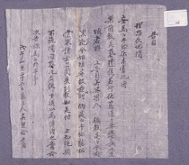傳令 1 1799(正祖 23) 傳令瑞山海美屯兼 導掌舍音性男處 右令爲惕念擧行事汝 矣身本屯兩處兼導掌 舍音差定爲去乎凡於 上納等節着實爲之俾 免罪該之弊宜當者 丁酉十月 日 忠勳府 정유년 10월에 충훈부(忠勳府)에서 서산(瑞山) 해미(海美) 둔전(屯田)의 도장과 마름의 일을 겸 -