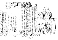天啓三年十月十一日海南縣立案 右立案爲斜給事粘連課 狀及各人等招辭是置有亦賤 籍段二姓四寸徐仁寶衿得奴婢幷付 爲有臥乎等以同文記乙都執去己未 年分橫行乞粮不知去處仍于 文記段背爻不得相考施行 敎味招辭據上項奴毛乙內隱伊年 二十五己亥生身乙同人處後所生幷以 永永放賣的實爲乎等以後考 次以葉作粘連斜 -