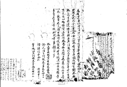 同日 保人李英年 奉事申國樑年 白等, 矣徒等亦, 私婢仁德, 及其夫古音未等 亦, 年老無子息, 將死乙仍于, 其矣器物等乙, 上典宅記上時, 參證與否, 推考敎是臥乎在亦, 同古 音未亦, 記上納宅時, 矣徒等亦, 證筆以, 並只各各隨參 的只乎事. 白〔着名〕 白〔着名〕 行府使〔着押〕 -