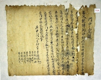 康熙十年二月日海南縣立案 右立案爲斜給事粘連課狀據各人等招辭是置 有亦本文記取納相考爲乎矣戊戌四月日黃原 牧場居千碩龜名呈所志內節該矣家自正月 染病大熾家人盡爲出幕家內段無人看守之際 去三月初七日公然出火家藏己物盡爲燒燼祖上 傳來久遠可考文券幷以沒數燒火爲白有去乎依 例立案成給事所志據切隣率來一 -