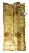 康熙五十年十二月日晉州牧 考辛卯成籍戶口帳內第一北面沙竹里四十二統五戶幼學河潤寬年三十五丁巳本晉 州父學生灦生父幼學泂祖學生達永曾祖成均進士悏外祖通仕郞李如泌本載寧妻 李氏年四十二庚戌籍全義父及第仁濟祖通訓大夫行兵曺佐郞兼春秋館記事館玹曾祖 通訓大夫行積城縣監楊州鎭管兵馬節制都尉之馨外祖通訓大夫 -