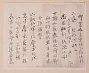 (皮封) 菊潭 靜几執事 〔押〕 聊 巴陵試所邂逅 顔範膠擾中雖未得穩承 晤誨而平生欲言亦一覩爲 夬尙忻幸在心卽因便仍 細聆 動靜凡百屬此客律 神相萬安區區慰仰實倍 平品慶觀一味憂悴無 善狀可聞但得夤緣自附 見新人後美可愛從此信 息亦得密通種種自幸 從氏老丈深荷惠然而俗例 以拘一宿卽旋殊覺瞻悵惟 -