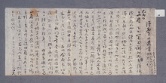 聞中宮 宿痾更梗漸至危 劇尋常問訊之儀非弄於 愼節切損而中心靄然未能 舍諸意欲探諦每致便禠之 緯繣至于今啣情而不自意奉 彧友扣探近 節則雖未知悏 復常度而■諸向來凡百頗淺 減下若因此而漸就坦途則玆豈 非相愛間貢賀之資耶弟以癃 衰朽殼何敢周旋於知舊之間 以不致已弔慰之事猶有少年之心敢 作舂粮之行中 -