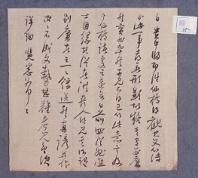 自聞五馬知府不勝栢 悅意外卽拜 先施 惠問尤爲感如何謹審 秋涼 政體候衛重何等仰慰 戚民癃狀酷甚恭 俟符到自憐奈何新 莅之初公務想多然 姑遊刃恢恢絃誦日聞 是爲之祝耳 仆倒 昏甚 不備問 令察 戚民 丙申菊月十二日 金億銖 謝上 (皮封) 宣樂堂 大衙 回納 海西 金戚民 上謝書 G002+AK -