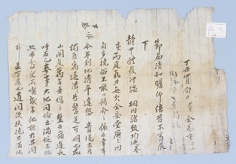 積違 顔範 瞻咏徒勤 際玆深秋 不審 侍省餘動止燕超 門內都候 次第衛護否 區區 溯仰非虛語也 戚等 憒憒依昔 無足煩言 就三江 會事 期日已迫 凡百策應 預爲關念 各邑名帖 與排錢 最宜趂期收合 俾無蹭蹬鄙鄕 都廳 方將申告管下諸邑 而使喚不一遠地直 通甚難故 玆因魚臺婚伻之來 臨河付傳盈 德 -