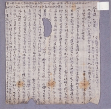 通文 右文爲通諭事. 伏惟我大宗家慶流亭廟宇及內外廳室, 頹圯許久, 將來未免傾覆之慮, 鄙等 聚首相議, 謀所以重葺, 而事巨力綿, 經紀無路, 不得已斥賣宗家如干位土, 僅備百餘緡, 以爲營始, 而 工役纔半, 財力已乏, 停役已許多月矣. 目今事勢, ▣刷沒策, 若此因循, 不得就成, 則 -