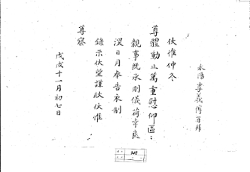 通文(草) 1 1898(光武2) 34×100 通文 右通喩事家之有譜國之有乘巨細不同記其仕蔭忠烈孝 則其義何異哉家無譜則不足徵於某之孫某之派國無乘則 何所據於誰爲賢誰爲否也譜與乘俱難等置者其爲譜也豈其 忽哉噫惟我寧辛之有譜久矣夫甲丙之分譜有所挾憾乙丑之 續譜尙多闕略甲寅之派譜尤有見漏寧欲無言 -