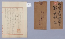 [皮封] 速達里 鄭世鎭殿 [皮封 뒷면] 普通學校 柿添平藏 謹啓. 近來御無礼致居候 處, 尊体愈御淸祥慶賀, 至極至極. 候陳者本日ハ 立派ナ 栗澤山御惠送下サレ御 芳情ノ段, 眞眞感謝ノ至りニ 存上候, 小弟モ不日御伺申上 度存居候ヘドモ, 公務多忙ラテ 御無礼致居候, 何卒御繰合 御散 -
