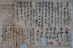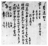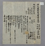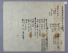 22. 記錄類ㆍ其他雜文 27 全鰒貳貼 海蔘壹貼 米蛤伍升 烈蛤參貼 鬱藿一丹 産藿次 甘藿七條 倭盤床壹座 革履二件 倭果壹匱 簡紙貳軸 周紙壹塊 女阿 又壹塊 五兒 粉一郭 新婦 針一封 茶料壹封 蛤醢壹缸 鹽魚七尾 芳岑査家 藿封壹 大平室家藿封一 觀吾兄家藿封一 (官印, 方7.5cm -
