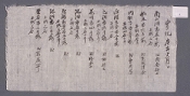 ▣…▣ 海壯 十二兩 弘叔 十兩五戔 弘策 六兩 ▣順 三兩 山直▣▣ 十五兩 ┐ 十三兩 還安時引用 別備條起去 貴太 十五兩 ┘ 作錢條 十七兩二戔九分 貴先 十五兩 周村陰谷宅 六兩 西澗道木宅 四兩五戔 道津莫三 三兩 潤谷金山 四兩五戔 酸梨洞琴泰鳥 六兩 周村日方 三兩 日山 三兩 -