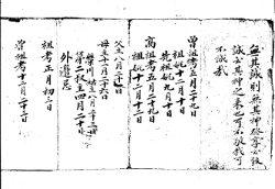 續奉先錄 干支十五代孫△△敢昭告于 己巳八月二十一日 顯十五代祖考某官府君 顯高祖以下四代列書△△無祿長子某夭歿又無男嗣以姪某之 子某爲後年二十三旣有室家亦已抱子智慮夙成可堪承 家宗議攸歸禮當立嫡喪葬已過發哀追服用伸處告謹告 父告亡子秀士某以余無祿汝旣早殞又無男嗣以侄某之子某爲 汝後宗祀是托門議 -