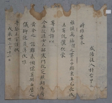 고문서-서간통고류-혼서 종교·풍속-관혼상제-혼서 30책 합천 용연서원편Ⅱ-고문서-치부기록류-혼서 1749년 박서우(朴瑞雨) 납폐서(納幣書) 박서우 1749 낱장 1장 종이 한자 30 고문서 6. 치부기록류 (9) 혼서 혼서 혼서 1 186 030_0081 출판정보: -